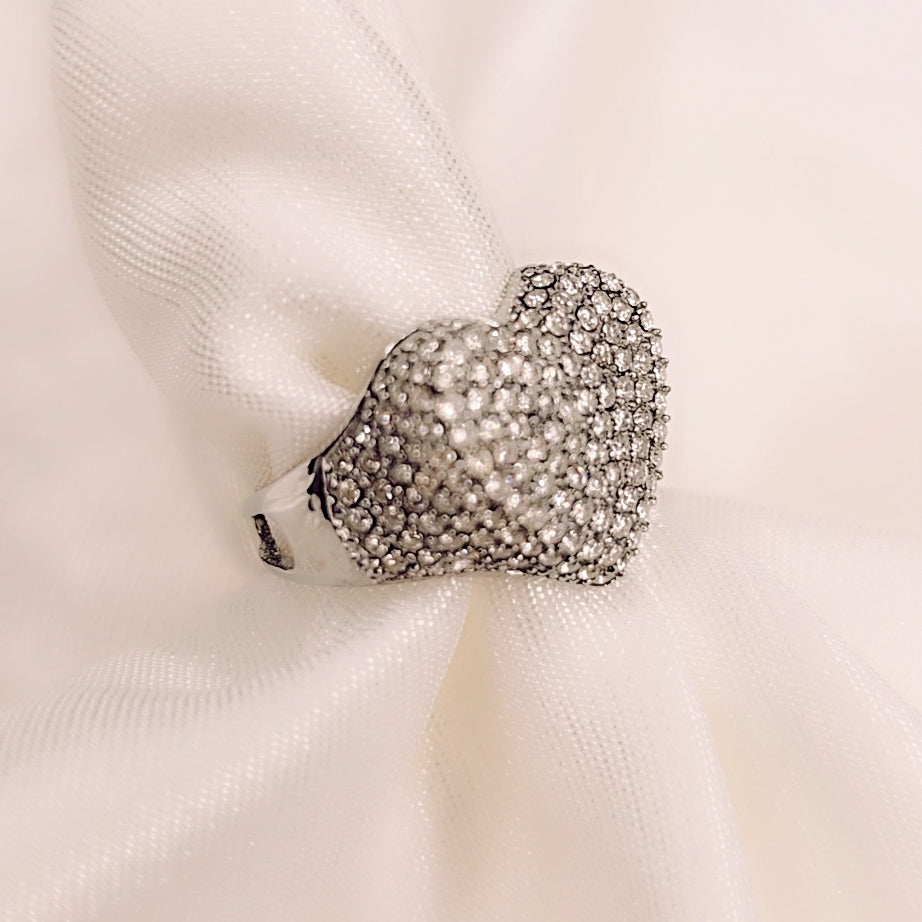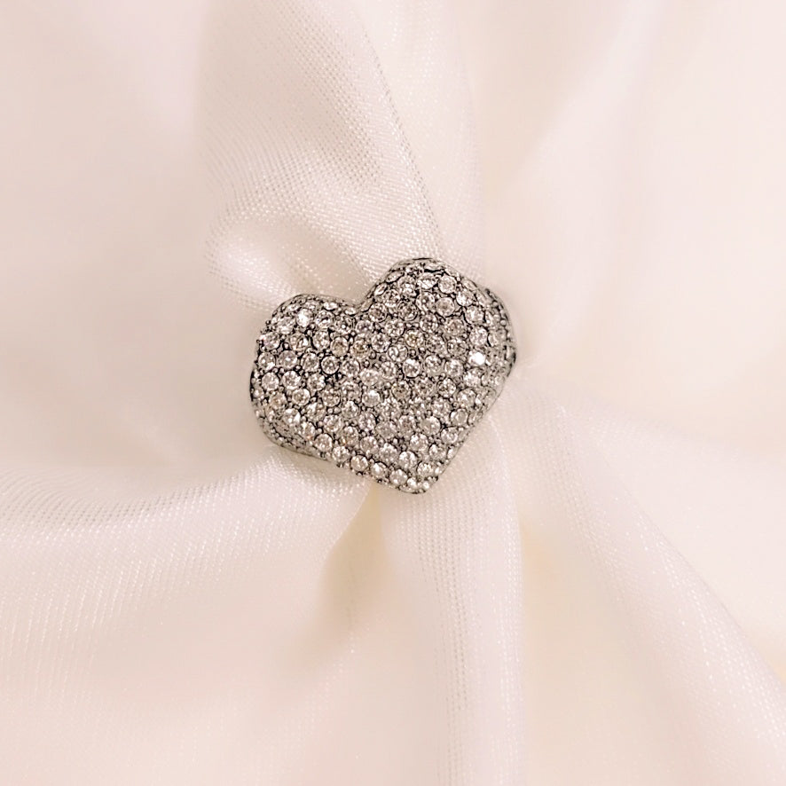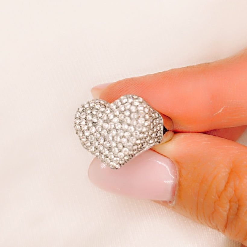 ​Il design è dominato da una forma a cuore, un simbolo classico di amore e affetto, interamente ricoperta da un pavé di punti luce.