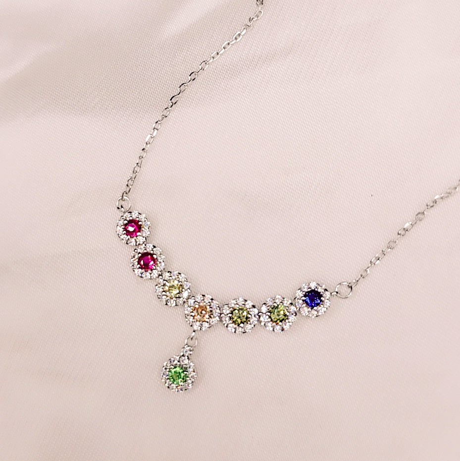 Lasciati avvolgere dall'energia e dalla brillantezza della nostra esclusiva Collana Colors! Questo raffinato girocollo con pietre colorate incarna la gioia e l'eleganza. Ideale per la donna che desidera indossare un pezzo unico e significativo, la collana è realizzata in Argento 925 con una cascata di Zirconi scintillanti, disposte a mezzaluna. È il gioiello perfetto per aggiungere un tocco di colore e luce a qualsiasi look.